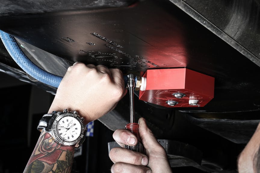 To make sure the truck can still haul what is needed, they opted to install a Pacbrake Airbag kit along with a B&W gooseneck hitch. Protecting the gears they, also, upgraded the rear diff cover to a PPE aluminum cover.
