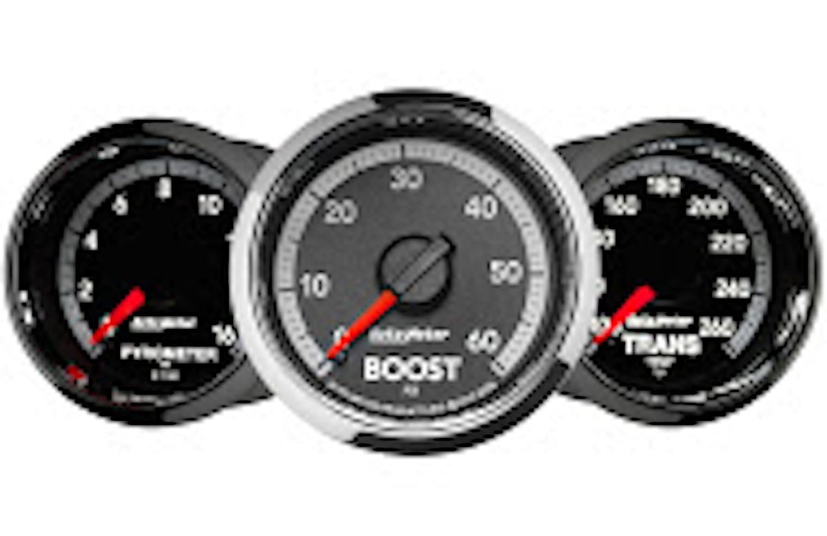- Gauges and instruments include: boost, pyrometer (EGT), Transmission Temperature, Fuel Pressure, Fuel Rail Pressure, unique pointers, dial artwork, color matched LED backlighting, and chrome bezels
