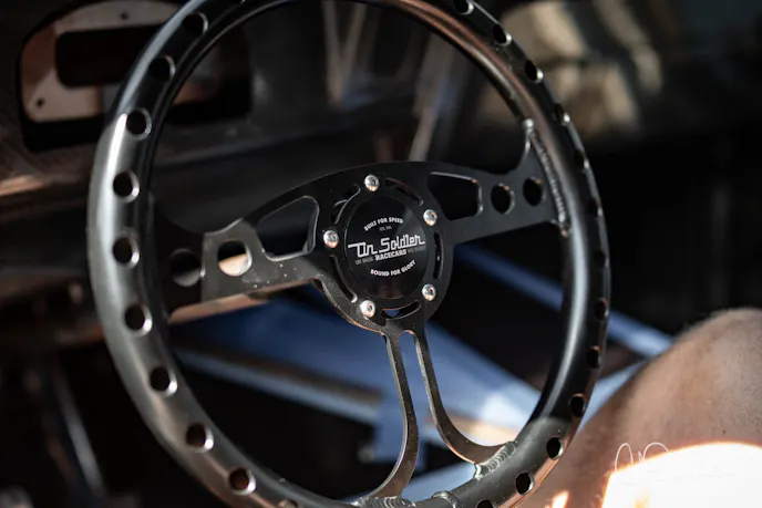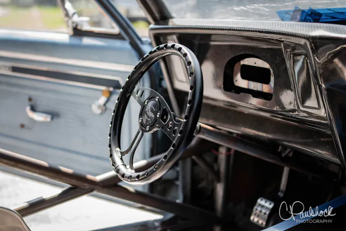 Factory steel doors remain on the hinges of the car, too. Even though he could save a bunch of weight there, Milliken needs the weight to fit within the class rules. If the plans of growing into a bigger, faster class happen, he has the option to lose more weight by using carbon doors. He mentioned that carbon doors should free up over 160 pounds.