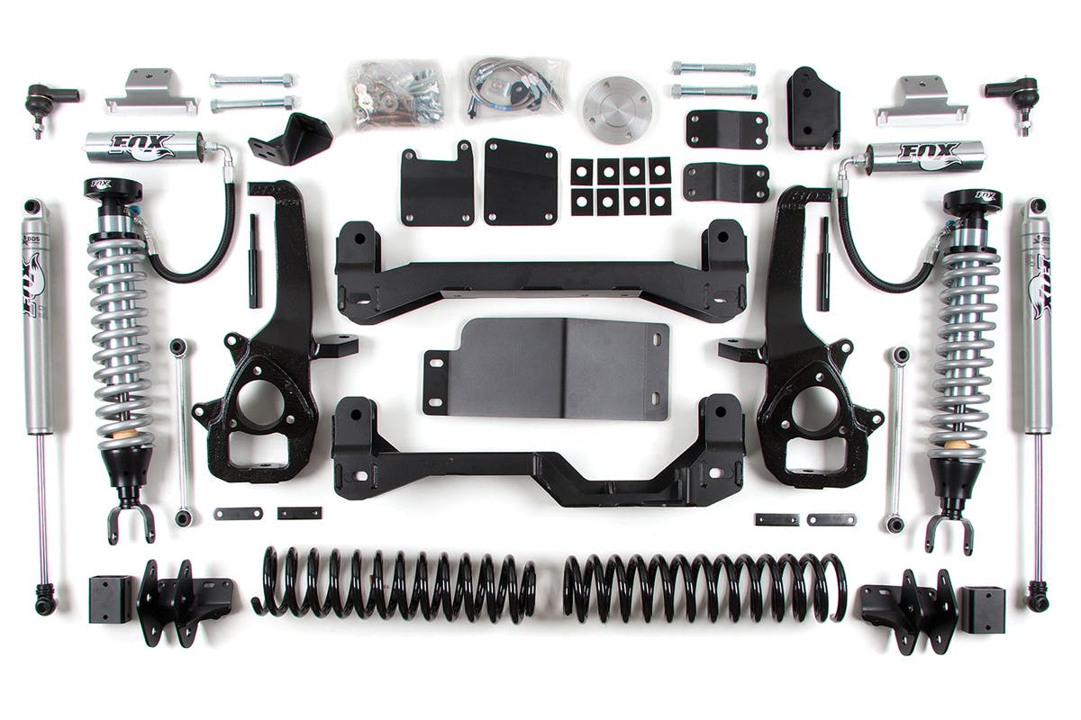 6″ Performance C/O Lift Kits: Nothing complements this BDS Suspension better than the race proven design of Fox 2.5″ remote reservoir coil-overs. These have been specifically engineered to fit the 6″ BDS system and feature an external reservoir for increased oil cooling capacity and nitrogen volume for a more consistent and comfortable ride. Other upgrades to the standard BDS 6″ lift kit include front reservoir mount and rear Fox 2.0 shocks all coming together for a suspension package that is build to perform out in the desert, the trail, and on-road. These kits are designed to fit up to 37″ tires.