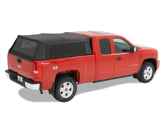 Recently, Bestop introduced a new line of soft top camper shells called Supertop. These are made very similarily to their proven Jeep soft tops and are just as flexible. They can be put up or taken down within minutes. When they are down, they can be fully removed or you can use the straps to tie everything up and out of the way.