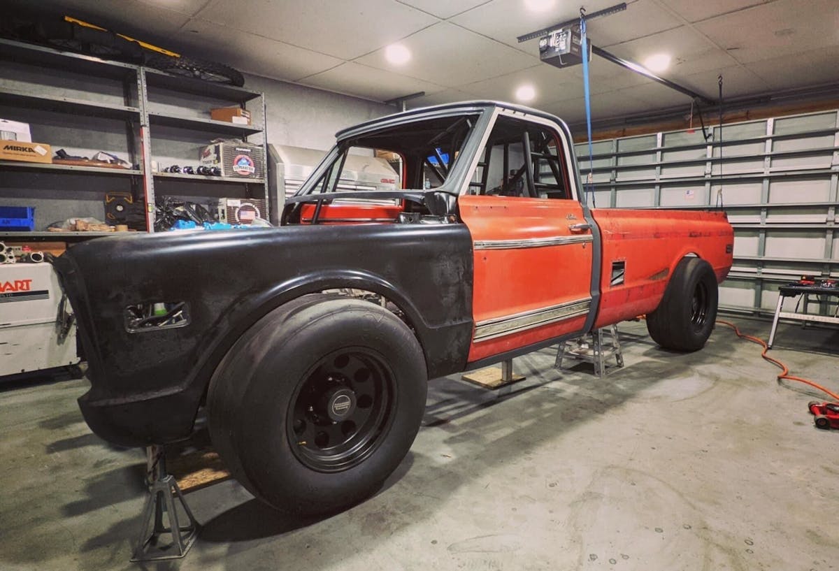 The truck’s final on-road accident was a pretty disastrous head-on collision, and with the cost that came with that for repair, Wyatt decided to take his perfectly good running truck, remove the body, and set this body on top of it. “All that remains from the original ’03 truck is a few feet of the frame rails and the engine. The rest has been fabricated to fit the drag-style chassis,” Wyatt said.