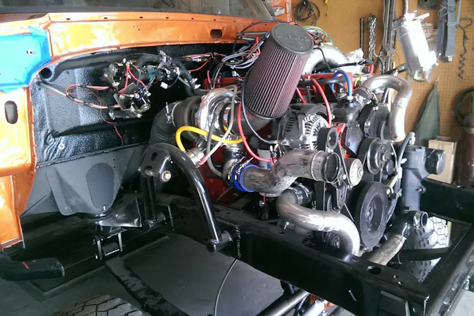 “I was able to install motor and trans mounts with some modifications to the crossmembers. With other parts and pieces being fitted to to frame it was time for paint. While bouncing back and forth I was able to build the engine. Started with a storm block, punched slightly over to get a fresh start. I ordered ceramic and teflon coated pistons, a KillerBee cam, fresh crank, and rods,” Zack continued.