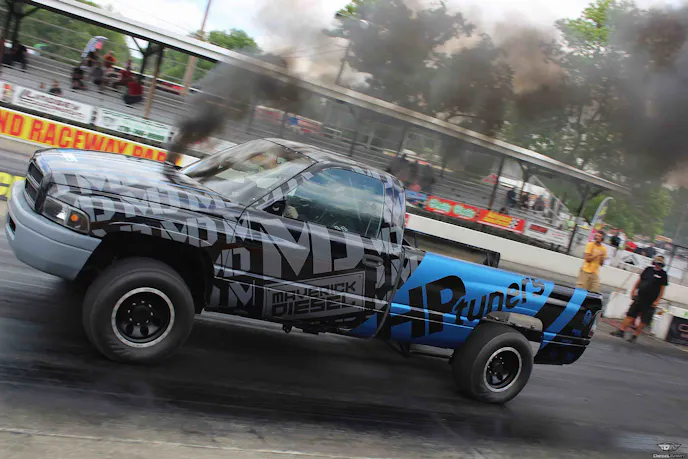 A class that you never want to miss when attending these events is the Pro Mod Class. These are the fastest trucks and cars in attendance with the exception of Pro Dragster and even then, some of the Pro Mods are keeping up with dragster times. Event host Rudy’s Diesel was in attendance with their two-wheel-drive Ford driven by Rawlings Barnes in hopes to succeed after a scary crash in Crossville.