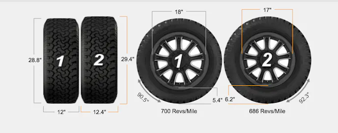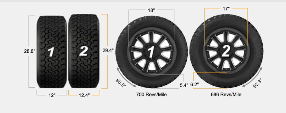 After seeing the measurements of these new tires, we couldn’t wait to get our hands on a set to test these things out. Fortunately for us, Willy Woo with Mickey Thompson got us hooked up with some of the new sizes. As you can see, these are visibly larger. So much larger that the tire actually went down in wheel size. The new size they offer is 315/50R17.
