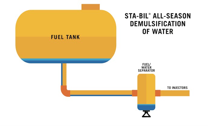 We spoke with Bob Galuska, Brand Manager of STA-BIL, and got his thoughts on this entire process and what they are striving to do with their products. “STA-BIL All Season Demulsifies water. Demulsification helps water molecules join together and become large enough for the fuel water separator to remove them. This chemistry allows the fuel water separator to work more efficiently. OEMs recommend the use of de-emulsifiers in fuel additives,” Galuska said.