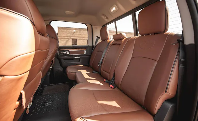 2014 Dodge Ram 3500 Longhorn 4dr Mega Cab 4WD DRW (6.7L 6cyl ) with American Force Livery wrap (Charcoal Black Exterior under wrap), Brown Interior. Loaded with 6.7-liter Cummins, Leather Seats, Power Front Seats, Driver Seat Memory, Heated and Ventilated Front Seats, Leather and Wood Steering Wheel Trim, Heated Steering Wheel, Cruise Control, Audio Steering Wheel Controls, CD Audio System, Navigation System, Rearview Camera, Trailer Brake Controller, Power Moonroof, Power Windows, Power Door Locks, Power Exterior Mirrors, Bed Liner, Side Steps, Trailer Hitch, Fog Lights, Roof Clearance Lights, American Force aluminum bumpers, Rigid led light bars.