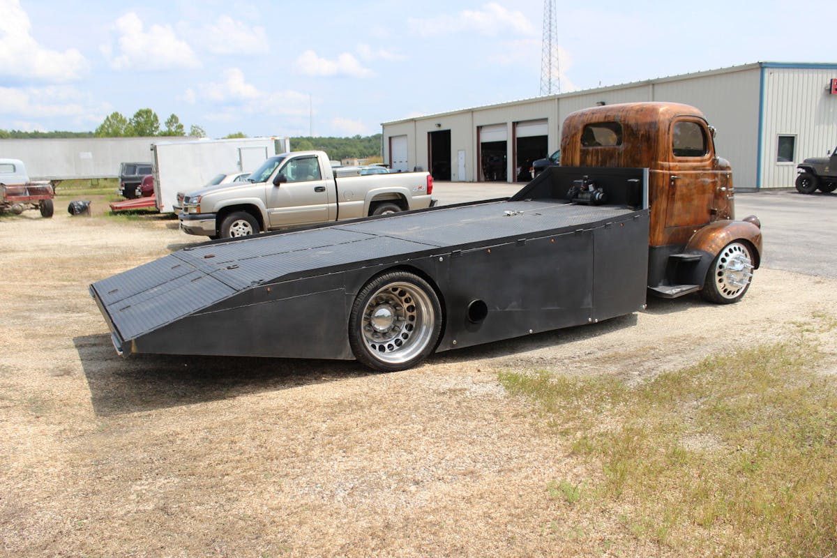 This 1939 could be the envy of your local rat rod circle with a little more work and vision: a few seats, an old steering wheel, and a little clean up in the cab. The character of this rig is striking alone, from the cab shape to the patina finish. A modern driveline means you could actually use this rig. What more could you want in a rat rod car hauler? Maybe a few turbos…