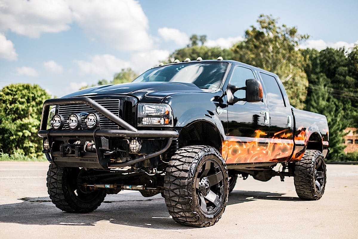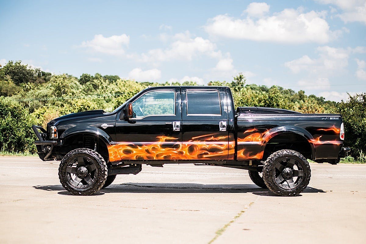 Harley Davidson edition Ford trucks command a premium for their luxurious appointments, badging, and limited production numbers. When you see one rolling down the road you know the owner takes pride in their truck. Some HD Ford owners are content to polish the paint, keep the chrome spiffy-clean, and leave it at that. And then there are those who use the broadside of their F-250 as a canvas, and the interior as a plush concert hall.