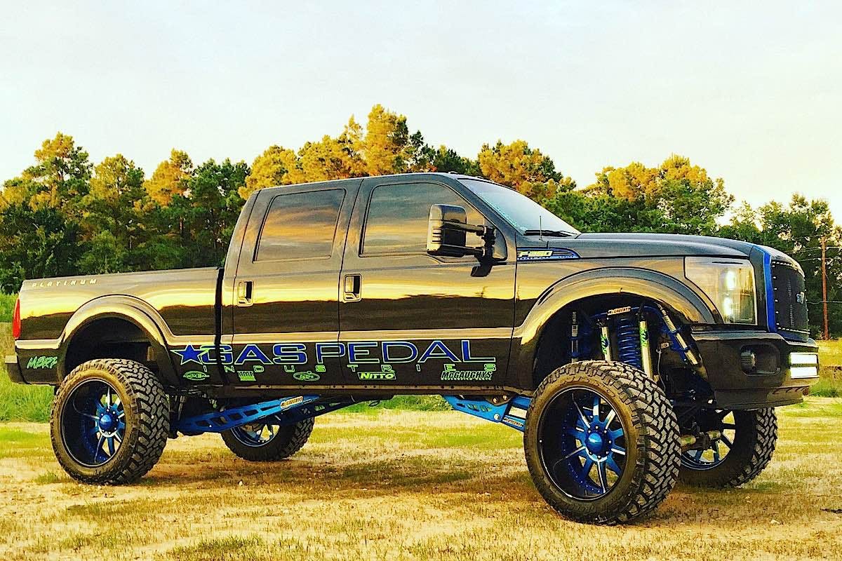 The list of modifications completed by Gas Pedal Industries of Houston, Texas is longer than the shock travel on this one-off diesel rig. The 6.7-liter Powerstroke V8 has had some help inhaling and exhaling as it motors this truck down the road. A S&B cold air intake will keep the air charge as cool as possible before the turbocharger compresses it. The exhaust system has been replaced by a four-inch MBRP stainless system with custom turndowns that exit over the rear axle under the bumper. An HNS Minimax Tuner, and EGR delete adds to the uncompromising direction of this build.