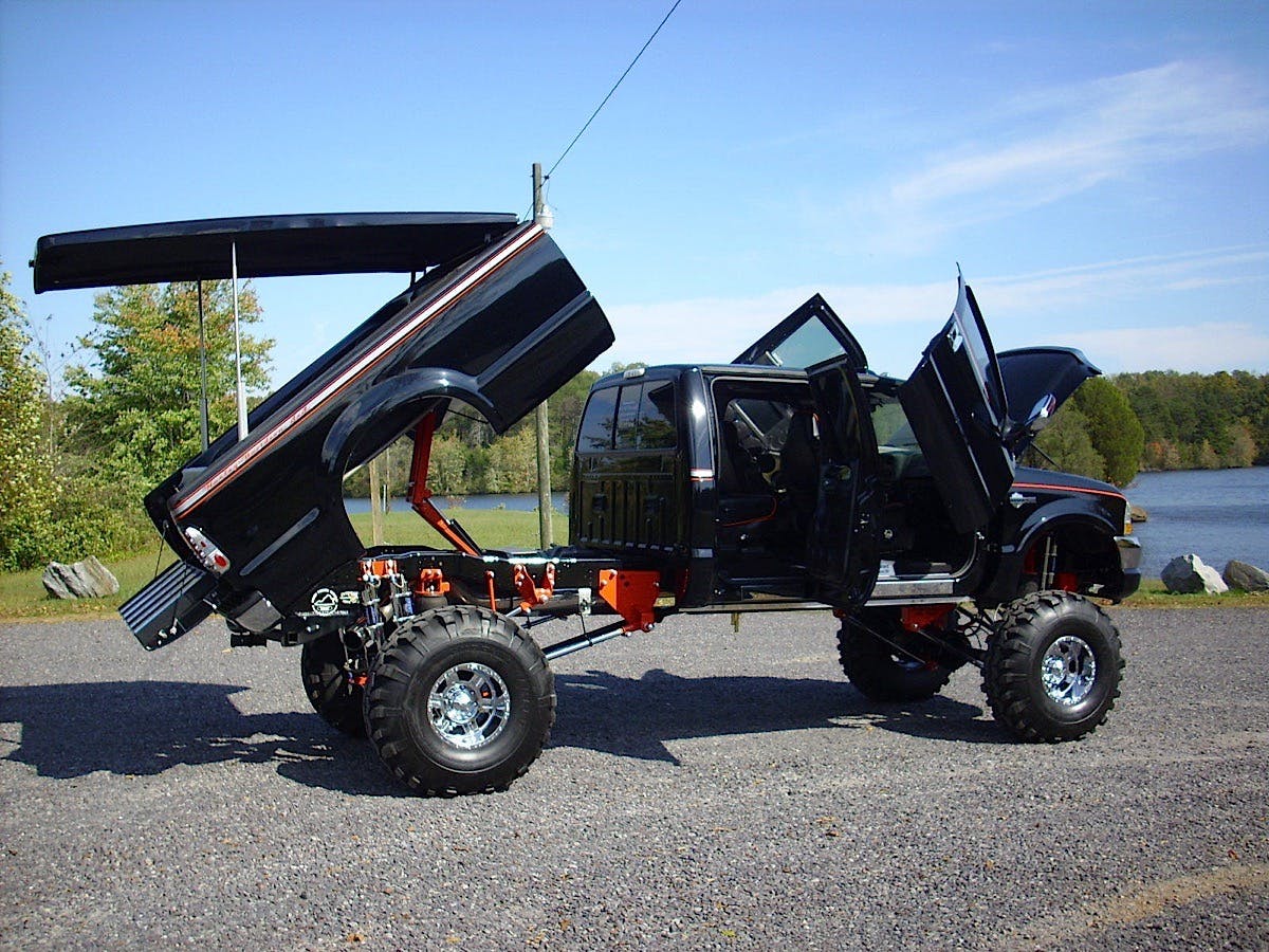 A custom piped interior, custom lighting, and instrumentation adorn the interior. While this truck may not be practical for anything other than making your ear drums bleed it certainly stands out amongst the lifted trucks of America.