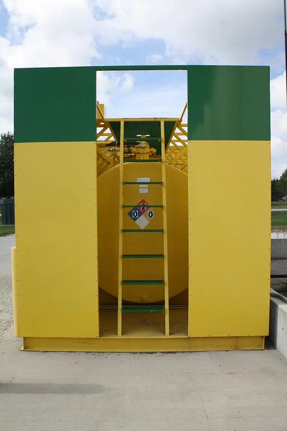 So, you could actually offer different blends of diesel to people or even use on your own farm if you wanted. This is a pretty cool little station and meets all of the safety regulations. The tanks are Firegaurd UL approved, they have venting and emergency releases. The tanks, also, have lockable spill boxes, gauges and overfill protection. Heck, the tanks even have their own heater to prevent gelling.