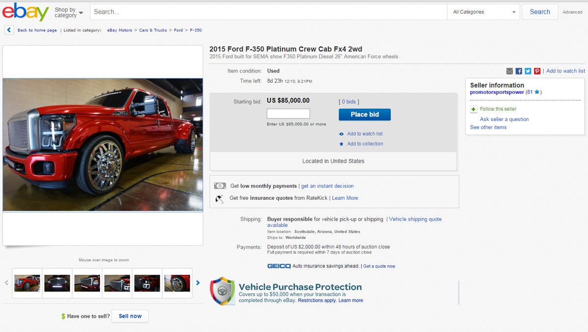 This particular F-350 appears to have been built just for the show and they have no intention of keeping it. According to the ebay listing, the truck was built for Anzo USA and was in their booth.