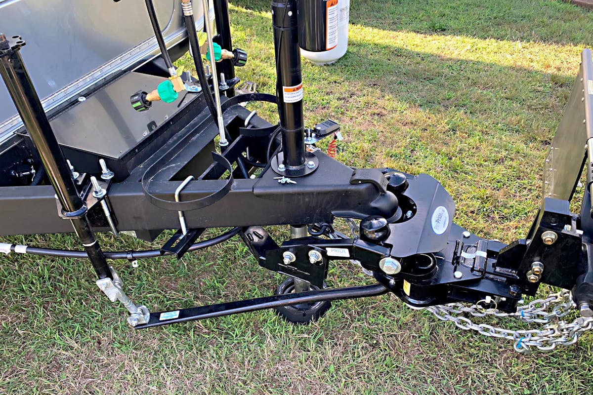 “The ProPride 3P uses dual-weight distribution jacks that mount to the tongue of the trailer,” Brent states. “These jacks attach to the spring bars with linkage on each side that allows smooth transition, no matter what the height. To raise and lower, you simply turn the 3/4-inch nut at the top of each assembly to increase or decrease tension for more or less weight distribution. The spring bars used for weight distribution never need to be taken off, only lowered for hitching and unhitching. Most systems require you to remove tension bars when backing or not in use. Also, The ProPride 3P has a tongue-weight capacity of around 1,800 pounds.”