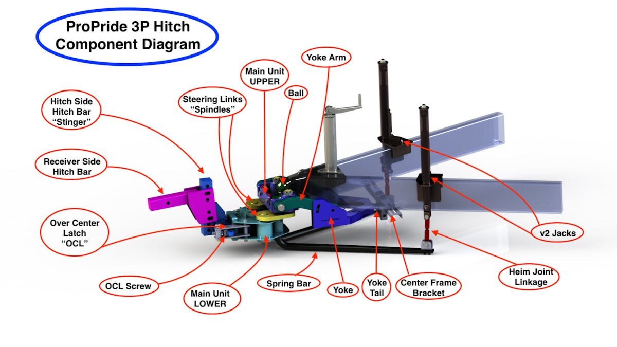 “We don’t try to band-aide sway after it starts. The ProPride 3P stops the sway before it has a chance to start. It does this by using Pivot Point Projection. The 3P hitch design does not allow the trailer to pivot on the ball. We lock out the ball and take the forces normally applied to the ball and project those forces to the rear axle, which removes leverage from the tow vehicle, rather than moving it. This is the pivot point projection at work.”