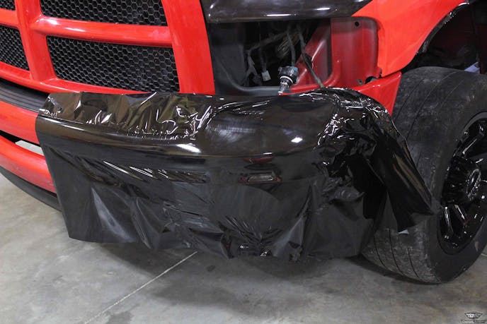 Unfortunately for us, the front bumper and grill of the truck had so many bends and curves. This made these pieces unwrappable. “With all of the bends and changes in the material, it’s not going to turn out well,” said Cantrell. “What will happen is the wrap will start to peel because we’ve stretched the vinyl so much.” Not only would it peel, but we would need to stretch it so much that it would discolor the black hue.
