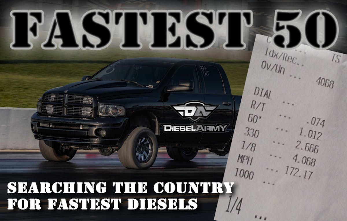 What are the rules? Really, there are none. No matter the year it was done, the track it was at, the state it was in, if you can prove that it was you with a video and/or timeslip, we’ll accept it. We know there are dragsters, trucks, and even cars out there, and everyone is eligible as long as it has a diesel under the hood. We want to crown the fastest 50 people in the country for all of their hard work.