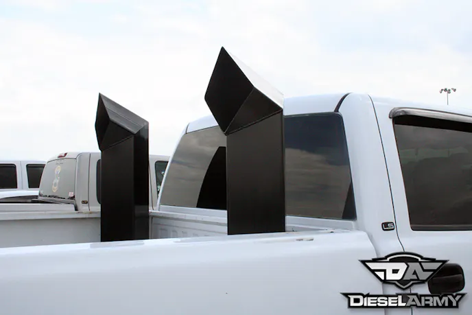 We have, also, seen a few guys with stacks really high to blow the smoke up and hopefully over their trailers. This helps to keep not only their truck clean but most of their trailer.