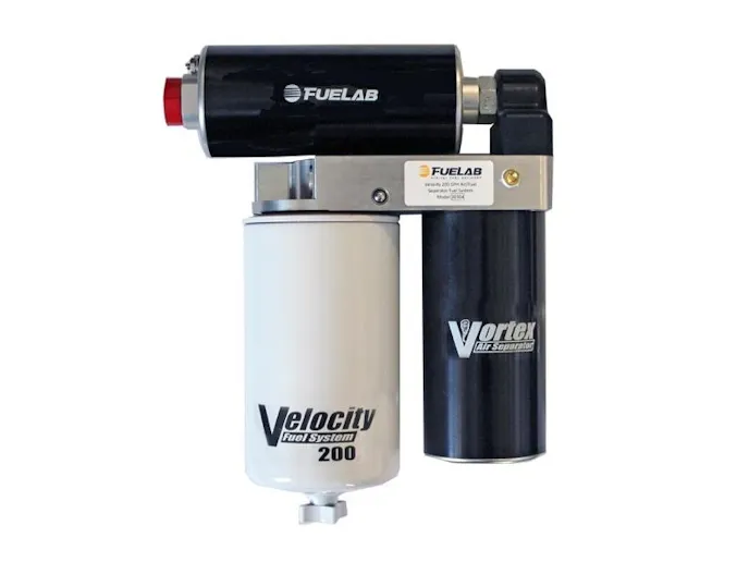FUELAB offers Velocity In-Line High Performance Lift Pumps for 2001-2010 GM Duramax 2500/3500 6.6L engines. Supplies the increased fuel demands of engines modified for more power. Premium quality, powerful, speed controllable and reliable replacement for OE lift pumps. Brushless motor for long life and low current draw. Flow through design for cool operation. Velocity 200 Series pumps provide a 200 GPH high flow rate and support up to 1800 hp, while Velocity 100 Series pumps deliver 100 GPH and support up to 500 hp. Both series feature an aerospace design based poppet relief valve that provides stable fuel pressure to the injector pump. No dynamic shaft seals ensure reliability. Vortex air separation and water/filtration system protects fuel injectors and provides pure fuel to engine. Pumps are quiet, install easily and use standard replacement filter elements. Hand-built in the USA.