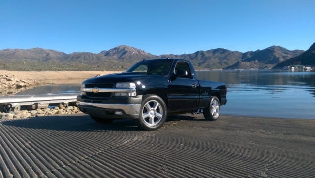 Autometer gauges let him keep an eye on vitals. Tuning was performed by ATP Trucks for smokeless truck flying down the track. The combination as a whole made for a regular cab rocket ship that could easily knock down mid 11-second passes in the 1/4 mile and still drive it back home after races.