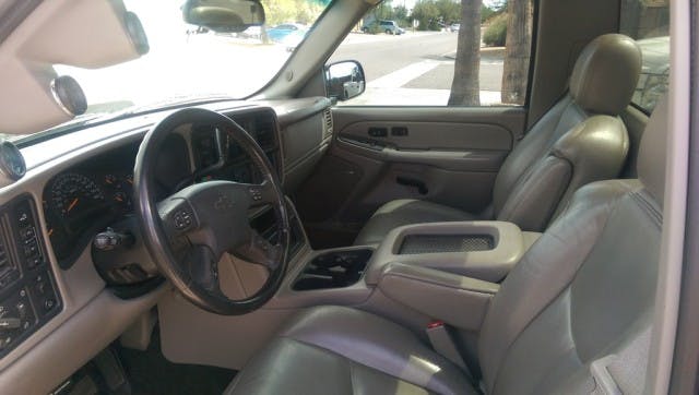 At this point, the truck was fully assembled and running and it was time to have it registered as a diesel and not gasoline. With the installation of a catalytic converter, it was now road worthy and legal. Next on the list was the exterior. The stock hood was replaced with a cowl hood and the truck was sent off for a fresh coat of black paint. Stock wheels and tires would not fly so a set of stock 20″ wheels from a Tahoe were mounted to finish off the look he wanted.