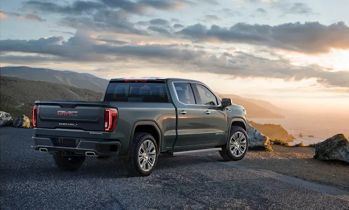 The 2019 Sierra Denali debuts a profound new GMC design that sets the Sierra apart from the Silverado. One of the coolest features of the new truck is the MultiPro Tailgate which is standard on SLT and Denali trim levels. the MultiPro Tailgate features six unique functions and positions, offering enhanced second-tier loading and load-stop solutions, a standing workstation mode and easier access to items in the box.