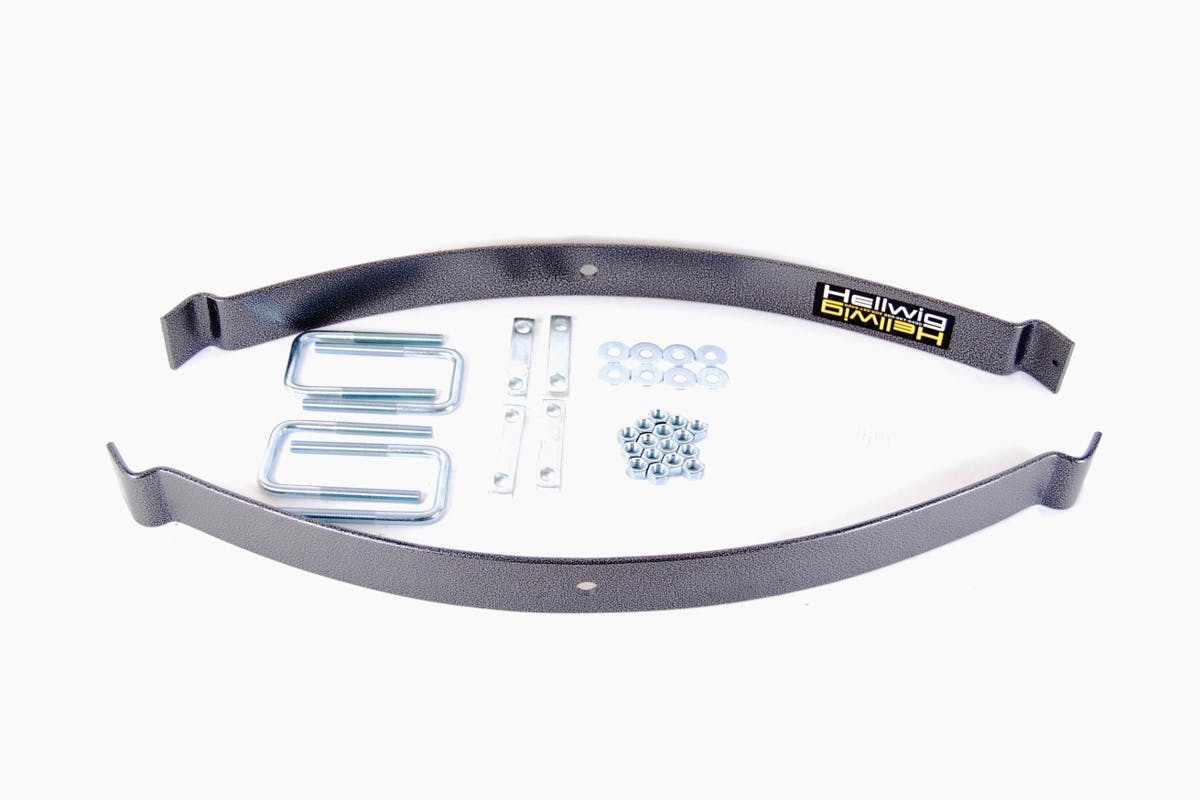 The newest addition to the Hellwig EZ-990 helper spring line is for the 2016 Nissan Titan XD. This single leaf helper is rated for up to 2000 lbs and improves tow/haul performance by leveling the vehicle. Leveling your vehicle not only improves aesthetics but puts weight back on the front tires leading to better braking, handling and wear. The kit includes everything necessary for the install and can be accomplished with basic tools in your driveway. The customer can adjust the end U-bolts to tune the rate of the spring allowing adjustment to their specific load or even to level the vehicle left to right if the load is uneven. Never exceed the vehicle’s GVWR.