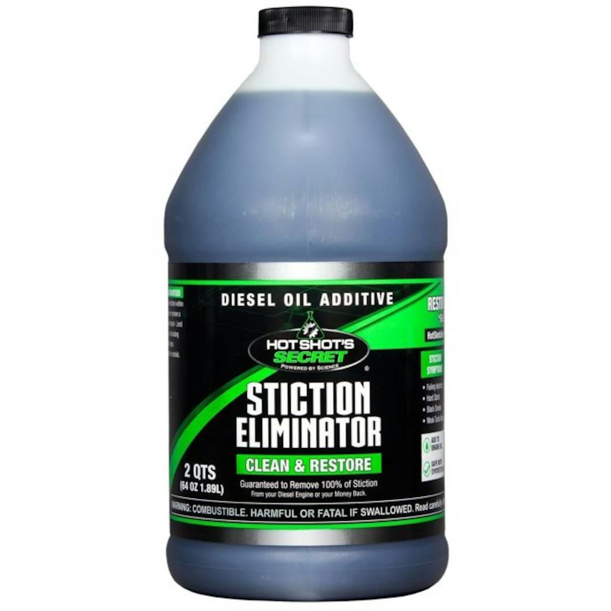 Hot Shot Secret Stiction Eliminator removes close to 100-percent of stiction, the gummy, sticky residue of caked-on oil varnish that often builds up on injectors, bearings, turbos and engine components. With the use of Stiction Eliminator vehicles experience fewer hard starts, rough idling, and black smoke.