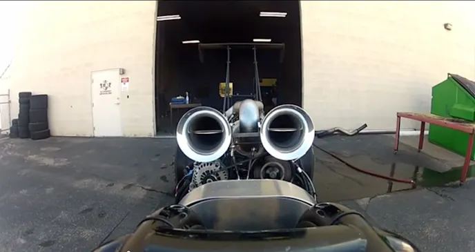 The video starts out with them starting up the Duramax diesel dragster. After running for a few minutes, it begins to spool up and you really start to get a sense of the power this ride is going to have. Then, like a jet engine, it fires all the way and bam it’s gone. Straight out of the garage and down the parking lot in nothing flat. The test pass is over before it really even gets started. This is one time we wish we could use the NFL slow motion reply cams to really see all that is going on.
