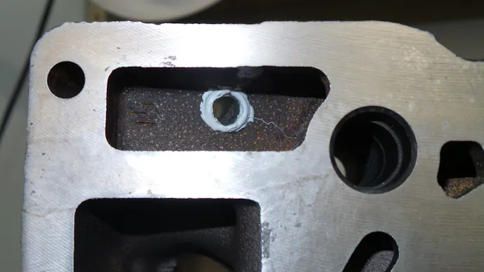 The limited flow through the heads creates hot spots. This engine is notorious for head gasket failures but also for cracking around the injector sleeves. When cracking occurs, it will allow fuel contamination in the cooling system. The longer superheated coolant sits in the water jackets the more prone they become to cracking.