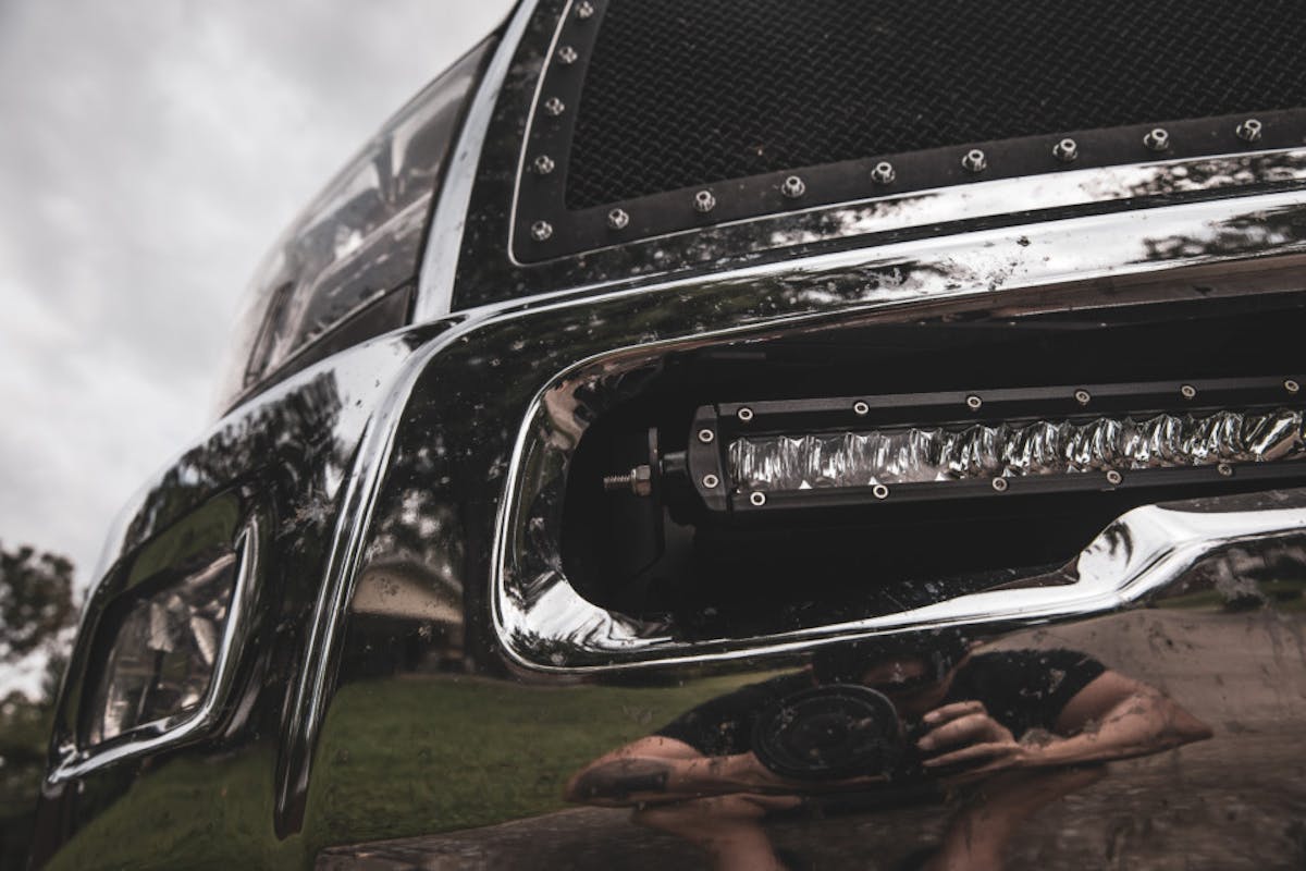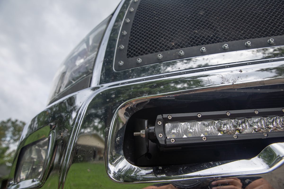After swinging into old faithful, Amazon, we found a tow-hook-LED mount bracket system and snagged it up. This allowed us to bolt our new lightbar onto the brackets and use the existing hardware from the tow hooks to harness it down. In a matter of a few minutes, our lightbar was in place.
