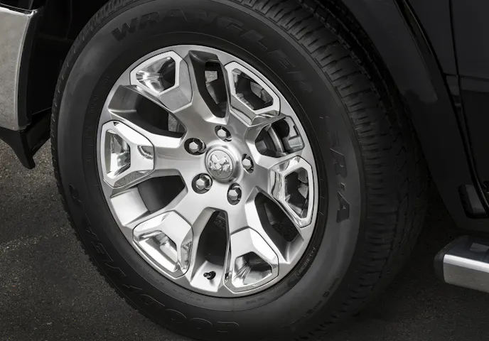 Ram 1500 Laramie Limited features an all-new 20-inch forged multi-surface aluminum wheel –  unique in the truck market and a detail not to be missed. Polished surfaces are accented with painted silver. Heavy Duty models also feature a new multi-surface 20-inch fully-polished aluminum, six-spoke wheels. Wheel centers are embossed with the Ram brand name.