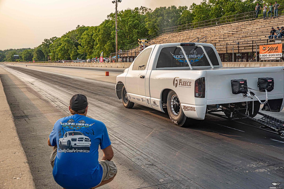 The Hot Shot’s Secret Pro Street class contained a few familiar faces. Michael Dalton, in his RLC Motorsports-backed Ram, Stainless Diesels’ Johnny Gilbert in their second-gen Ram, and your 2019 Ultimate Callout Challenge winner, Derek Rose. Rose was coming off a high that was hard earned and made his way down for some racing after that grueling event just a few weeks ago. As if the performance wasn’t good enough, Rose went on to qualify in the first position with a 5.32 at 137 MPH.
