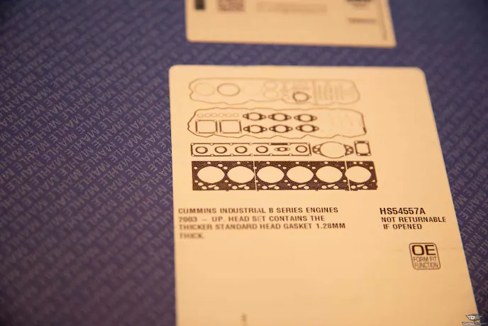 We spoke with MAHLE and MAHLE Aftermarket to make sure we got the parts that we need. So, what do you need to rebuild your 5.9-liter Cummins engine? Well, since we completely tore this engine apart, we’re going to need it all. We wanted to get the full engine gasket sets, all new bearings, new pistons, and rings. We have laid out all of the parts that MAHLE has provided for our build and we will list the part numbers below.