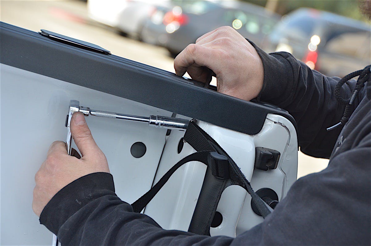 With the tailgate off, the tailgate net installation was completed in around 30 minutes. We had to remove the tail lights, drill four holes, and attach the net with the supplied nuts and bolts. Once everything was tightened down we were able to pull the net tight and reinstall the taillights.