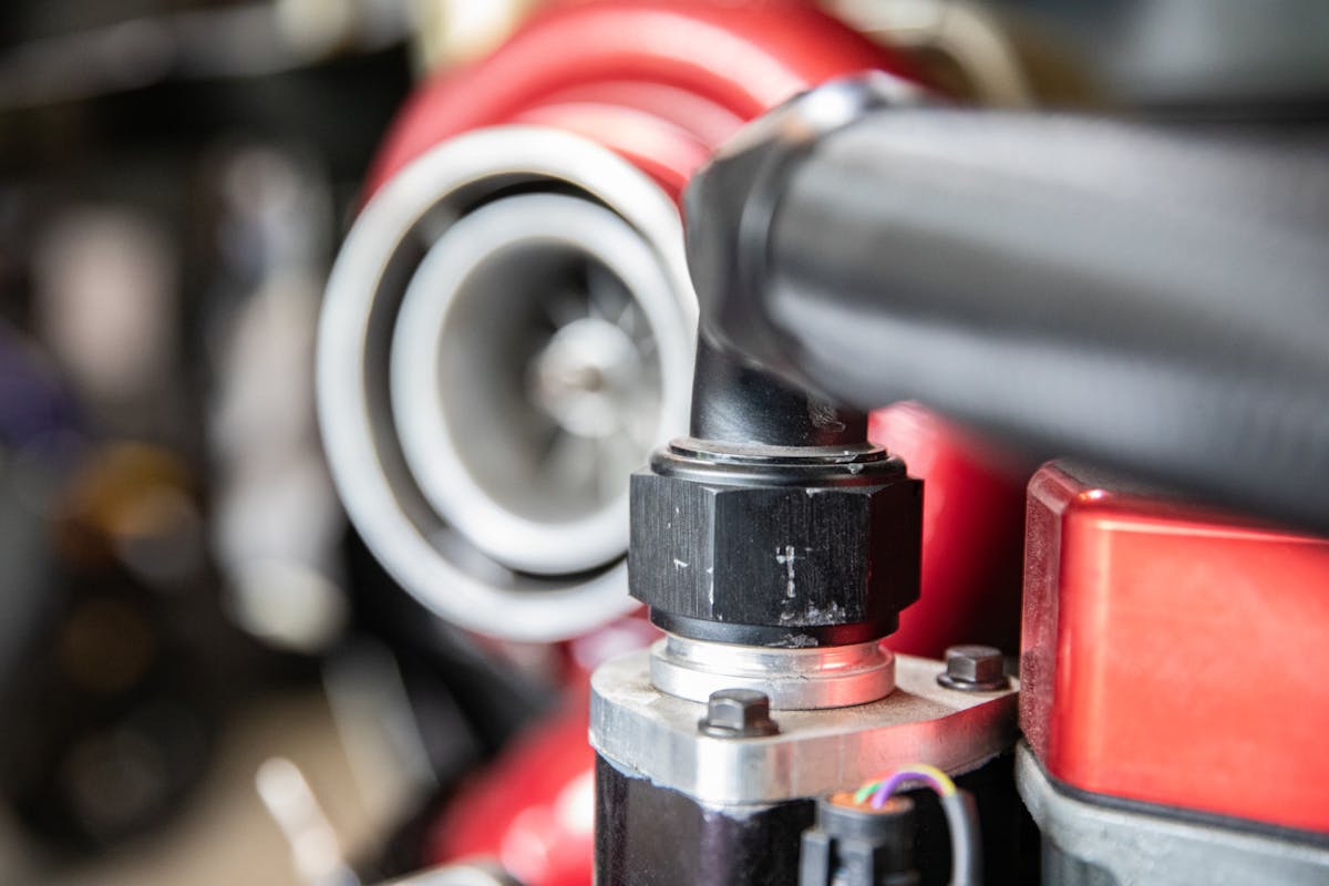 Knowing I wanted this engine to accept as much water as possible and flow freely, I decided to use -20 braided hose and AN fittings. This would not only make my plumbing larger and freer-flowing than before, but the AN fitting/braided line combination will make under this hood look much better. Luckily for me, our friends over at Earls Plumbing had just what I needed.