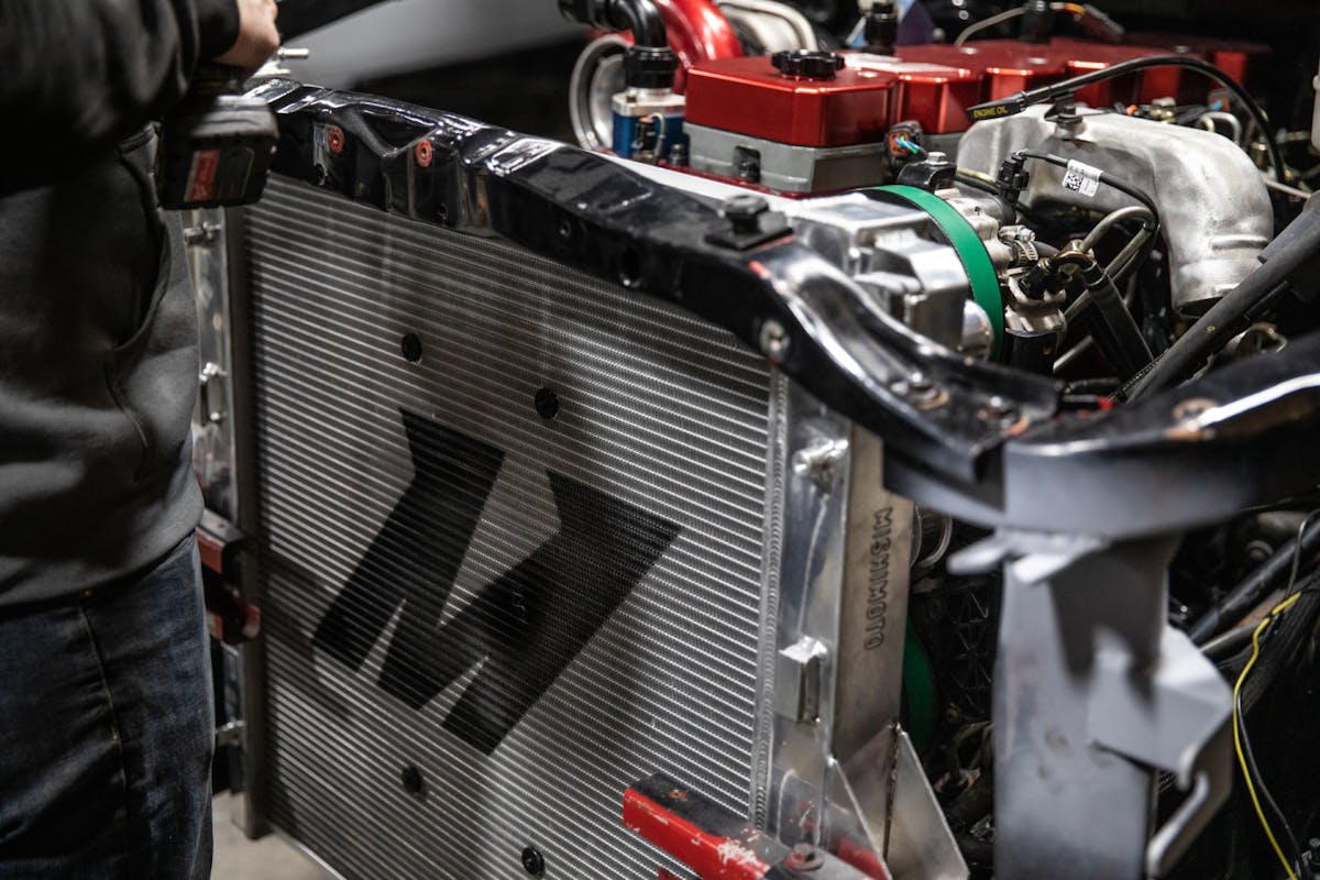 You guessed it, Mishimoto handled that, too. Now I’ve got all three situations covered. We can circulate the water, we can get the heat out of the exchanger, and we can freely flow water through the new aluminum radiator.