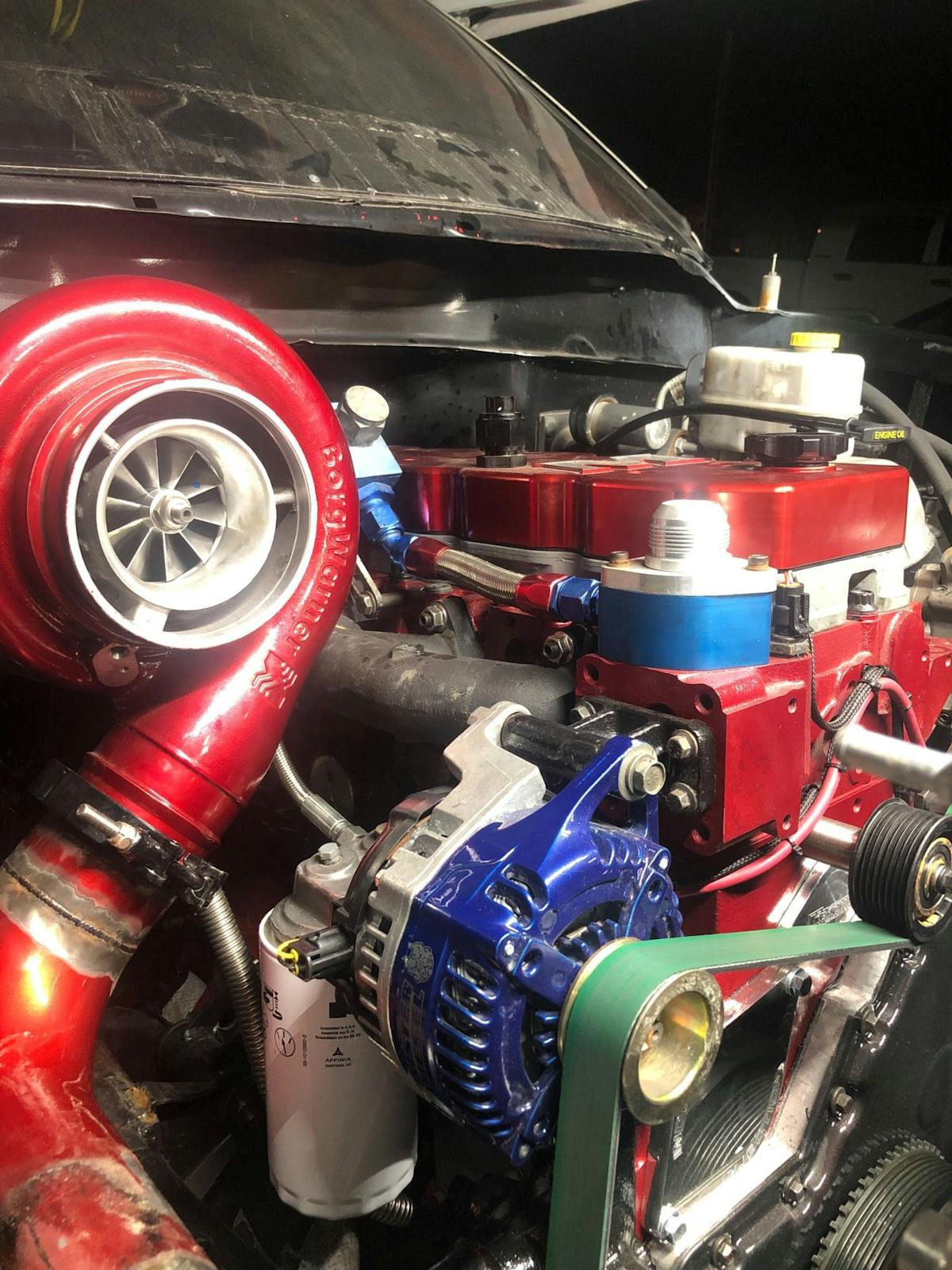 I decided it’s time to get rid of the factory water pump and quickly cool this engine down between rounds. With the water pump out of the way, I needing something to block off that port and keep the engine bay free of leaks. Thanks to Industrial Injection, they supplied us with one of their sweet aluminum covers that not only covers the hole but it also gives the engine some shine.
