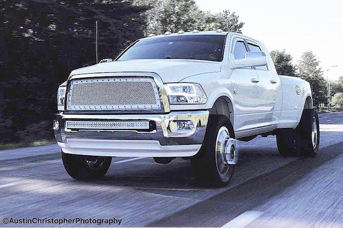 “My favorite part about this truck is that it’s a short box dually,” said Domey. “The flow of the big cab to the wide rear is really great.” His 2010 Ram has a pile of aftermarket parts installed which made it what is it today. The modifications aren’t all just exterior either. It’s happily making some healthy horsepower numbers.