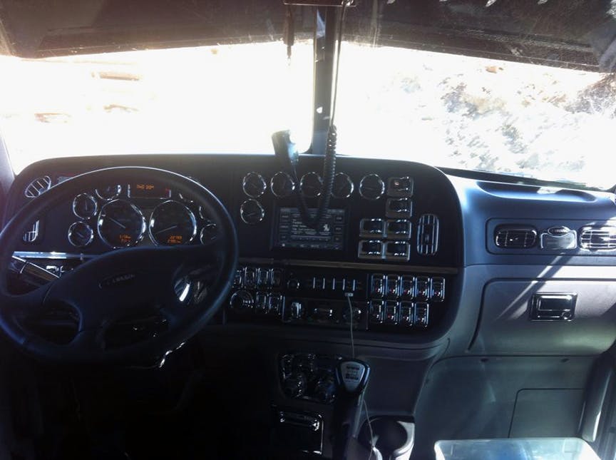 Under the hood is an ISX Cummins engine backed up with an 18 speed transmission. All three rear axles can be locked up, making this a 12 wheel drive!