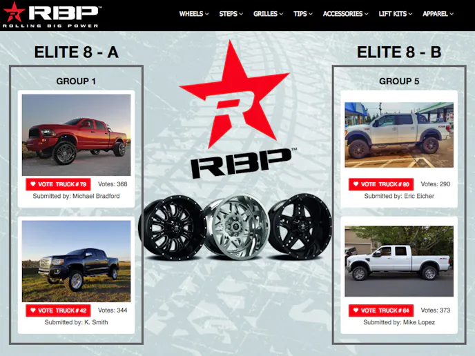 Per the contest rules, the winner will be picked from the Final Four round and be announced on April 1. They will win a set of four one-piece wheels of their choice from RBP, in any style or finish (excluding custom finishes), and they must install said wheels onto the winning vehicle.