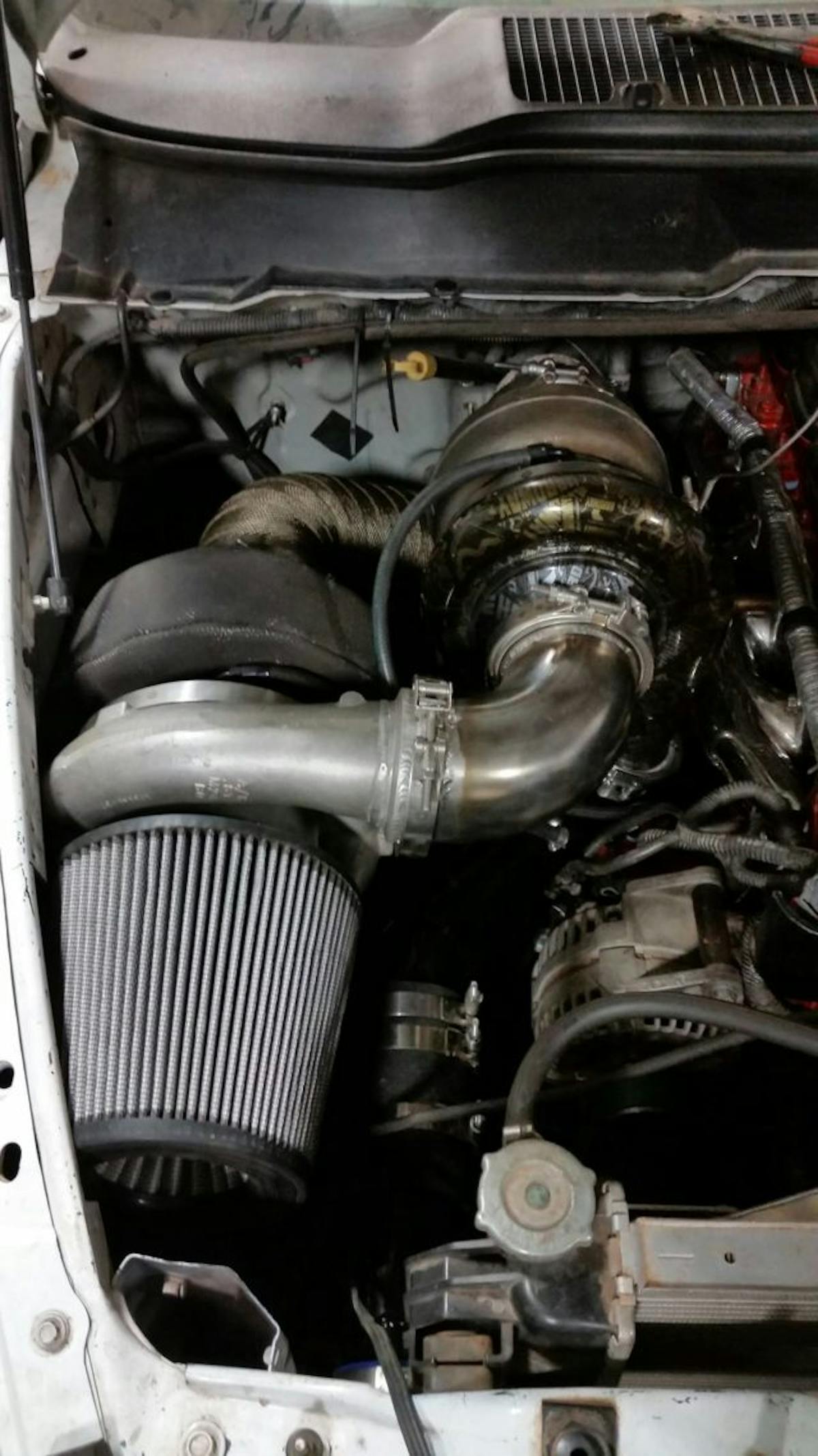 The current set up on Sooty is a T6 flange, s482 fed by a Garrett GTX5508R atmospheric charger. Custom tuning to make everything work properly is done by the team at Hardway Performance with EFI Live.