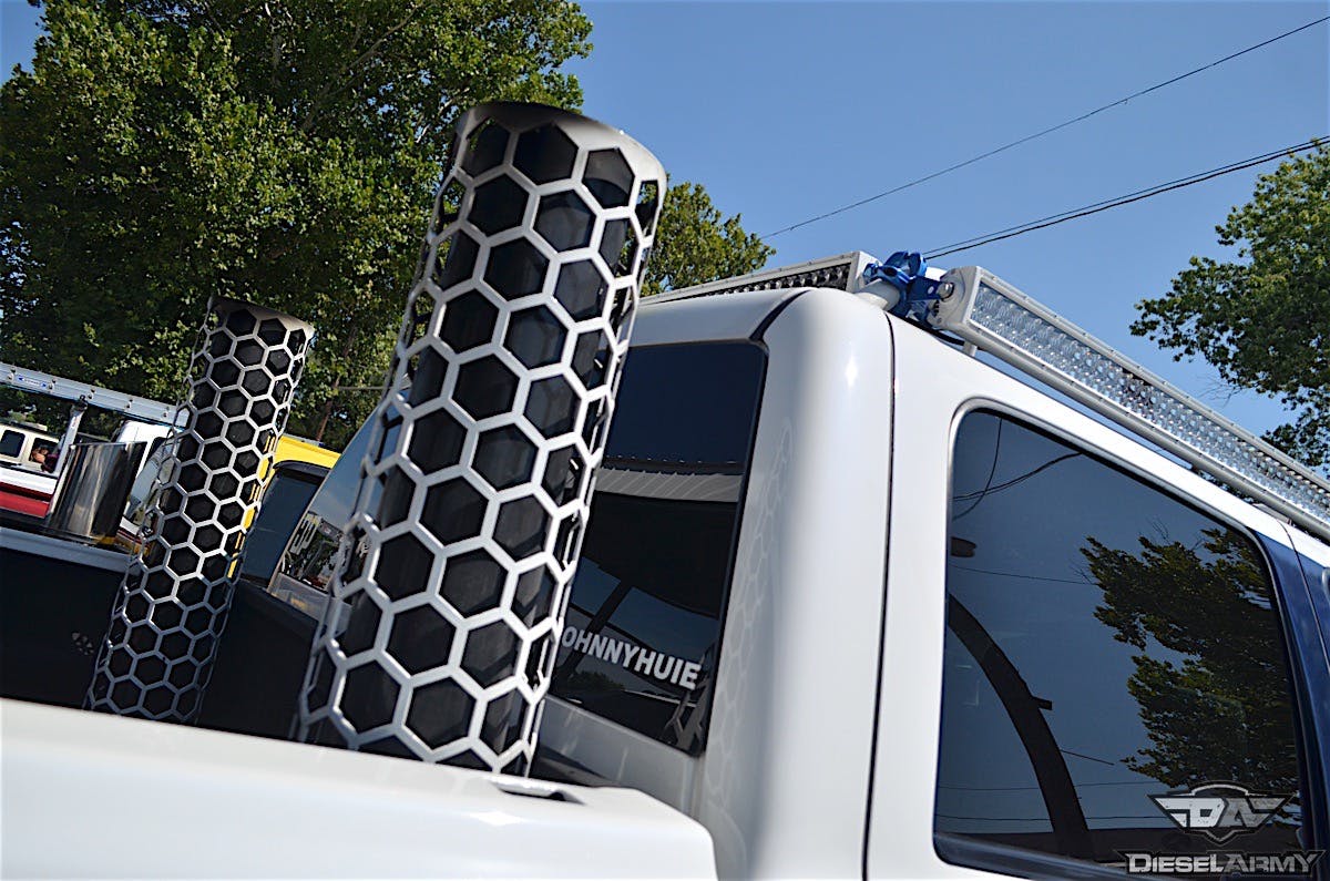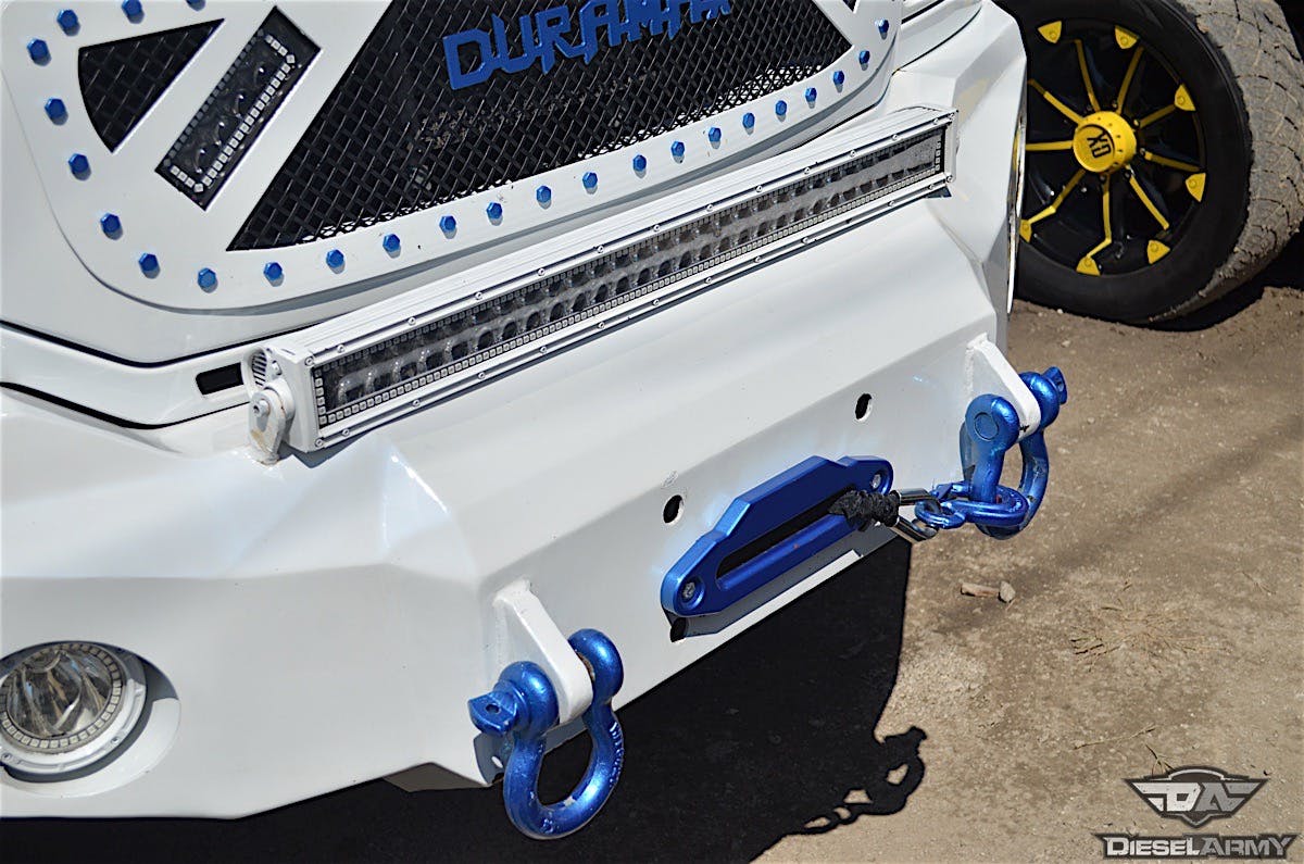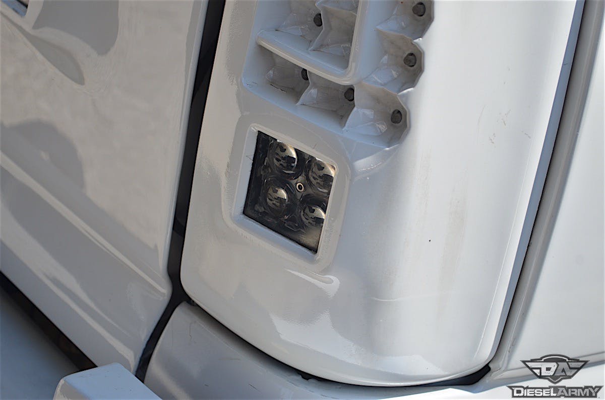 “After using it as a work truck for awhile it started to become a way to advertise for RetroDiodes LEDs, and that is why it has so many light bars,” Huie said. In addition to all the lightbars the truck also has an AFE Magnum Force cold air intake, straight exhaust with axle dump with 5-inch tip, PPE boost valve, 700HP ATS transmission, EFILive PPEI by Kory Willis, ProFab turbo horn, upgraded transmission cooler, traction bars, Cognito Motorsports steering brace kit, and Rare Parts G2 tie rods.