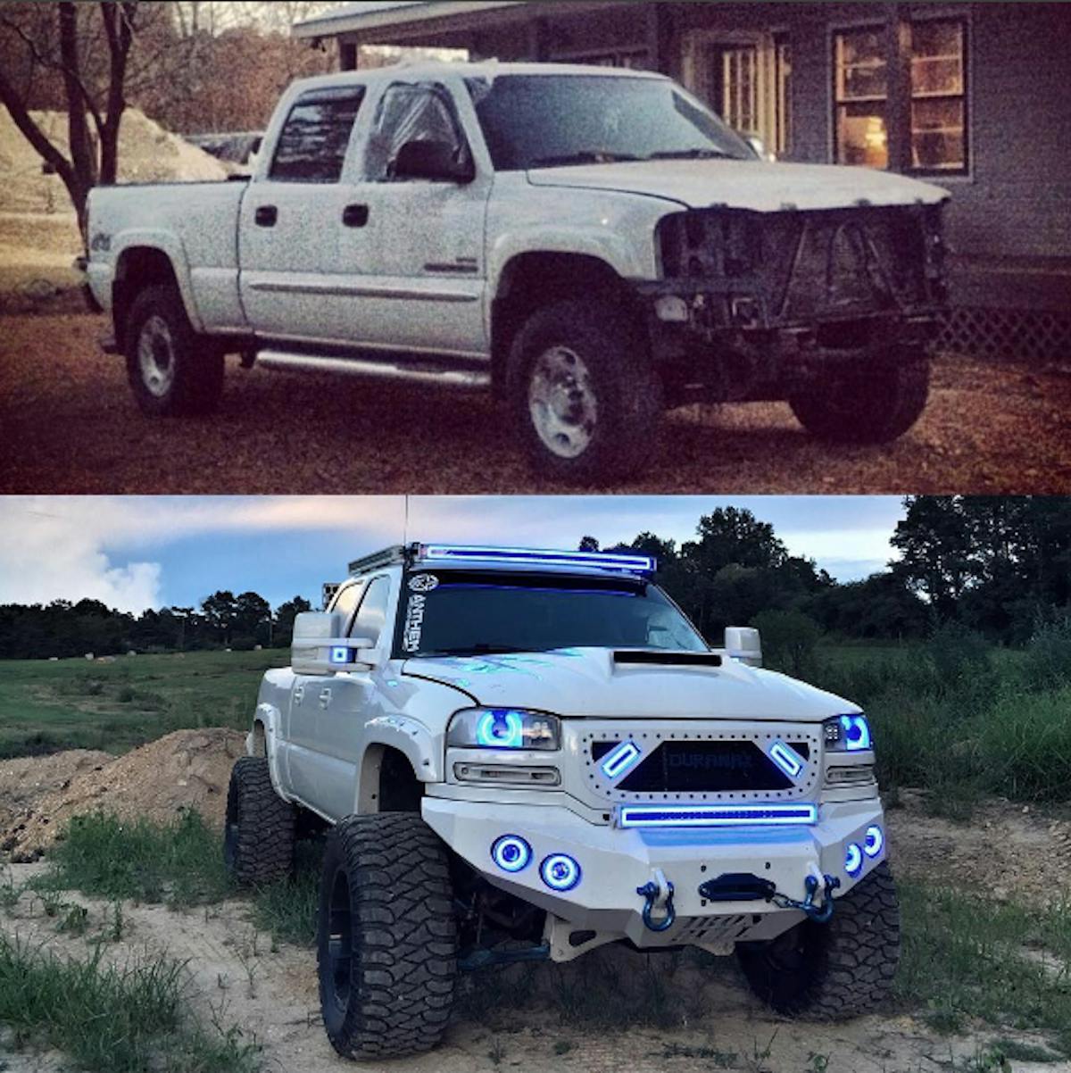 “I bought the truck about three years for a parts truck,” Jonathan Huie explained. “It had been totaled and was sitting in the owners back yard, but after looking it over, I decided to rebuild it.” From scrap to show truck this white diesel is loaded down with custom parts. The truck has a 6-inch Fabtech, Rancho shocks, and is sitting on 20×12 Anthem Enforcer wheels wrapped in 36×12.50R20 Mickey Thompson Baja MTZ.