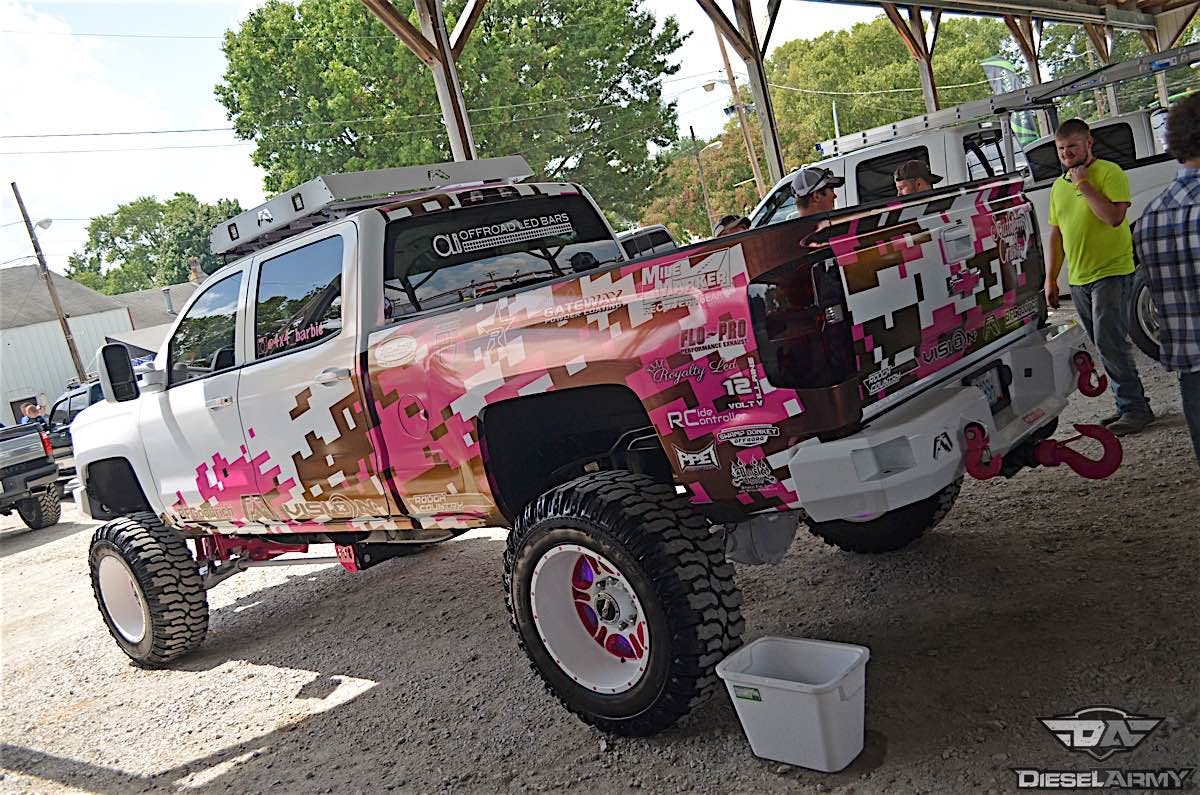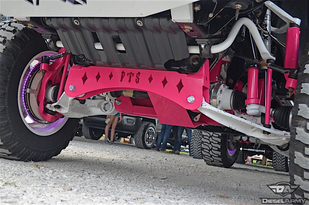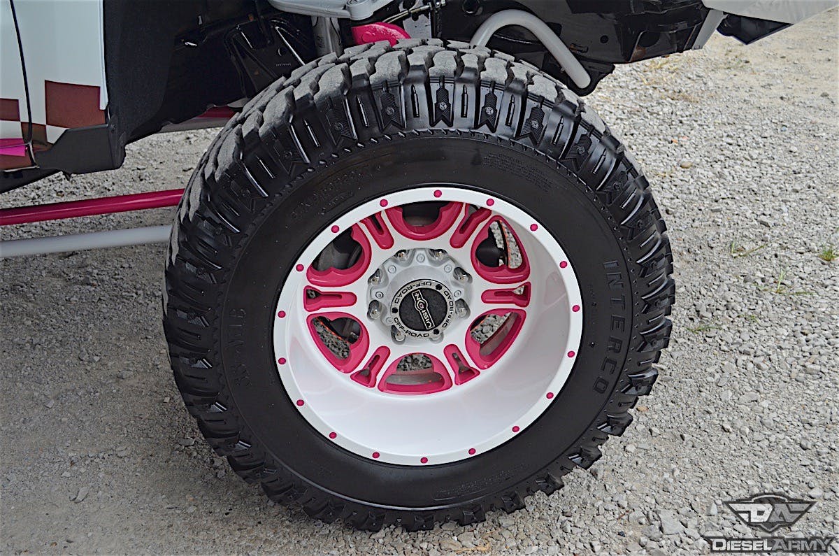 This truck is loaded with custom parts, but behind it all there is still plenty of pink.