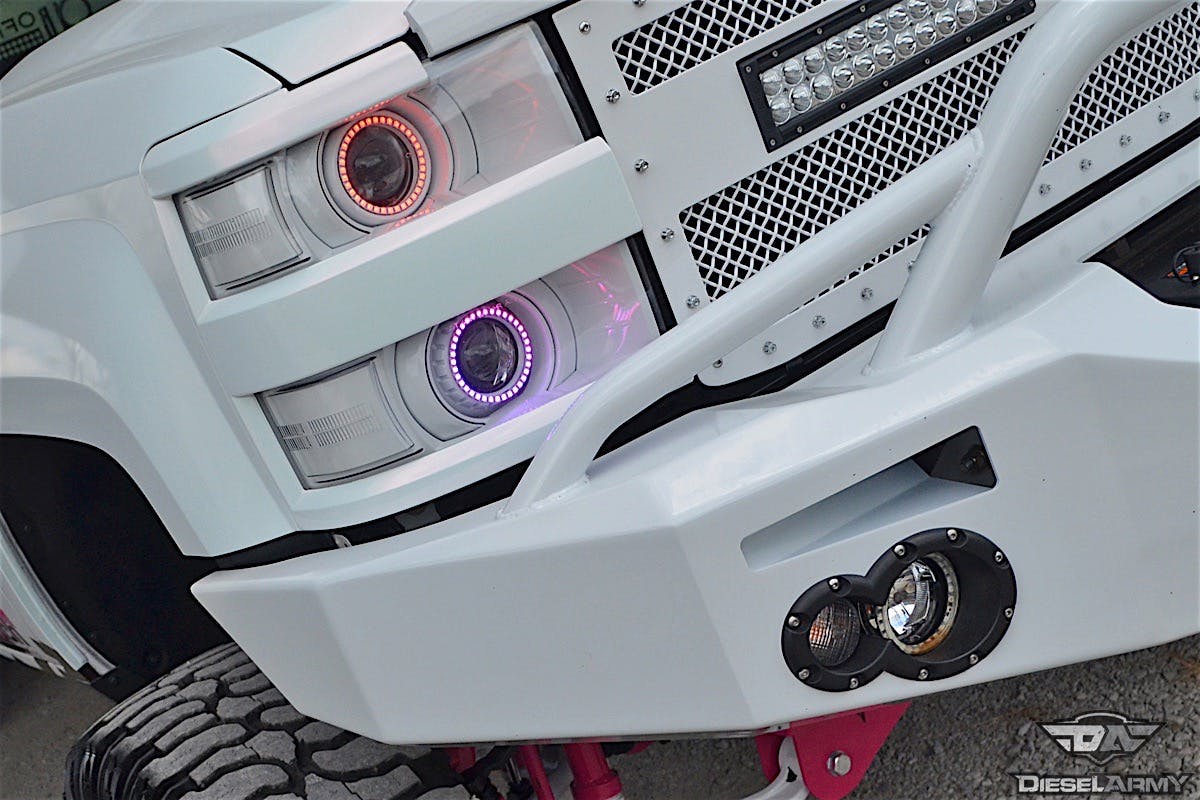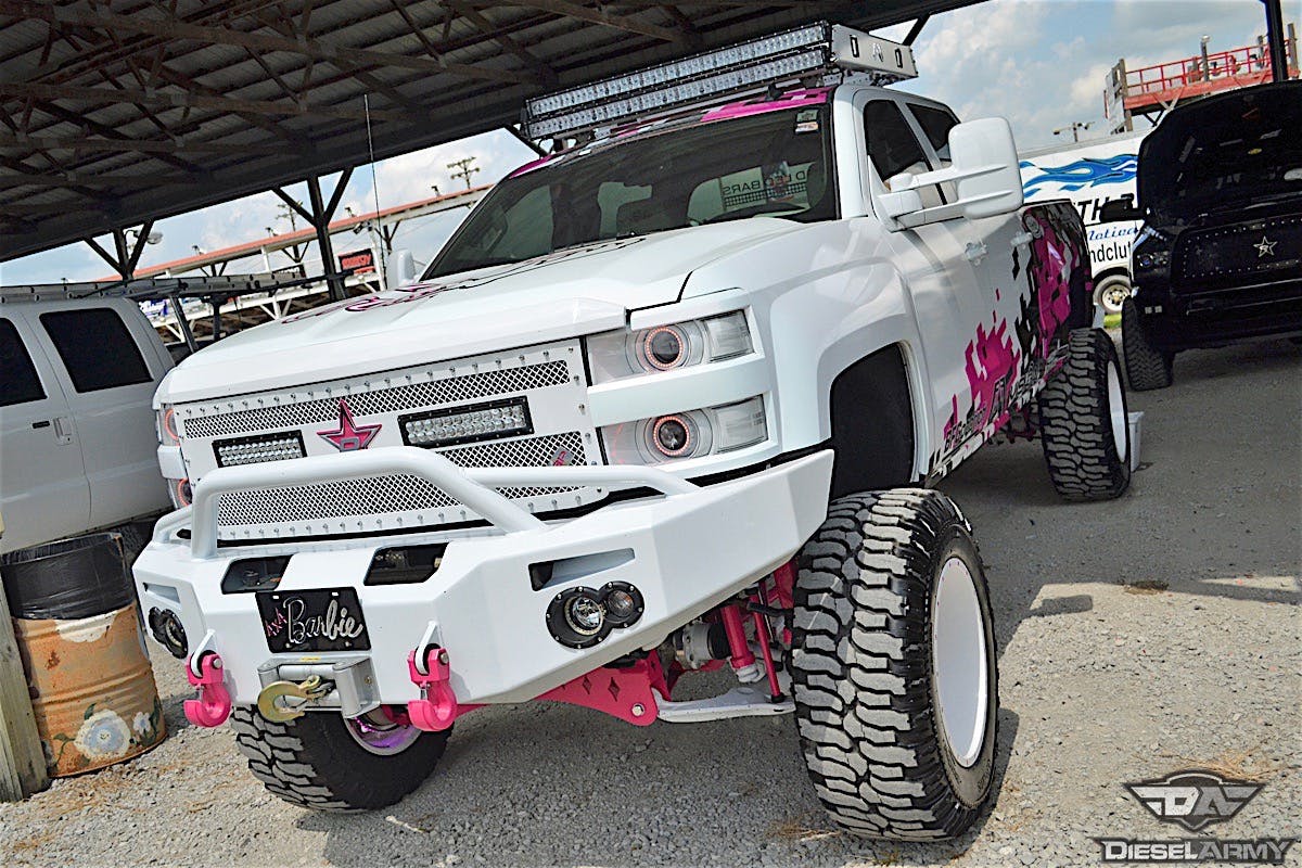 If that wasn’t exactly what a diesel loving Barbie would want to drive the custom digital camo wrap with a chameleon overlay and Roadwire white custom leather seats would be the icing on the cake. Did we mention that the seats are embroidered with 4×4 Barbie?
