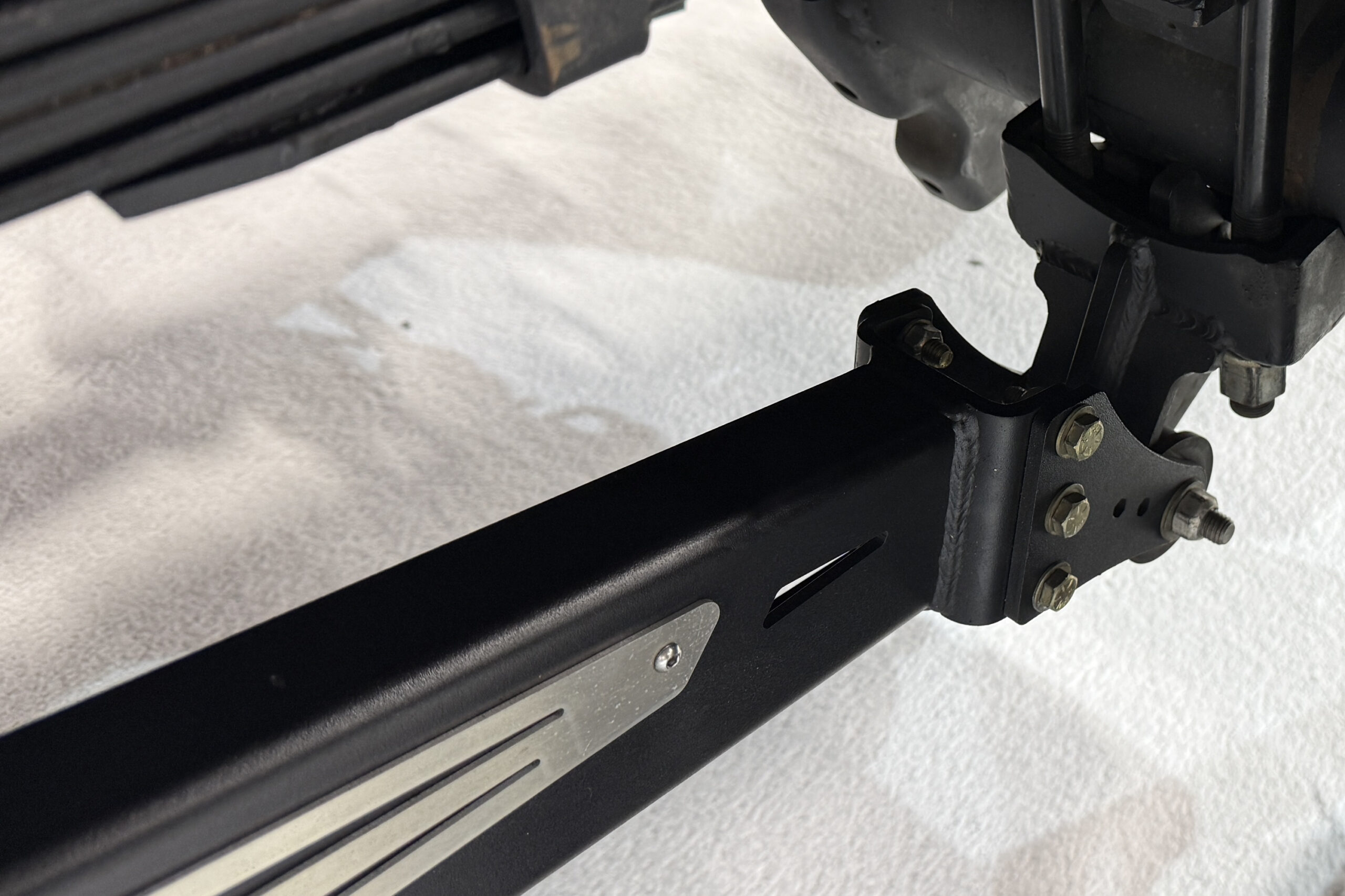 For 2017 and later Ford Super Duty F-250 and F-350 single-rear-wheel trucks, the S&B Torxz Traction Bars are engineered to control axle wrap without limiting suspension travel. The design keeps the axle centered in its correct zone while allowing the springs to move naturally.