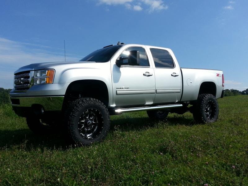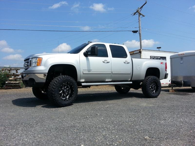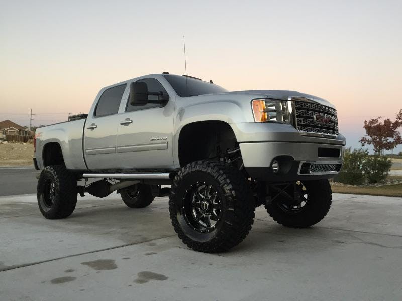 When he got back, the truck went up even higher, thanks to a 10-12 inch Cognito stage 2 tow lift package. With the truck further away from the axle, a new set of rubber was called for. So, Nitto 40×15.5×20’s were mounted on the BMF wheels.