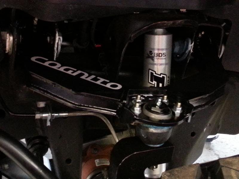 Now he wasn’t going to lifted the truck and have the whole front end torn apart without fixing some of the known issues. So, he called the guys at Cognito Motorsports and ordered their pitman and idler arm support, as well as their upper control arm. Then he opted to get a set of Rare Parts extreme duty tie rod ends.