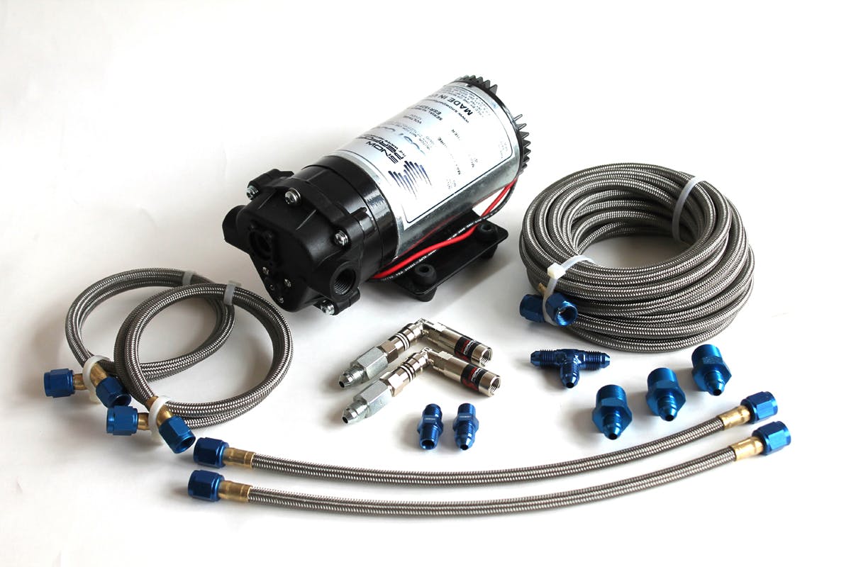 Snow Performance Boost Cooler systems with the braided hose upgrade, are available for all gasoline and diesel applications. Boost Cooler water/methanol systems increase air density in the combustion chamber, allowing more timing and boost in gasoline engines for more power. In diesels, more power, fuel economy, with lower exhaust gas temps are the result.